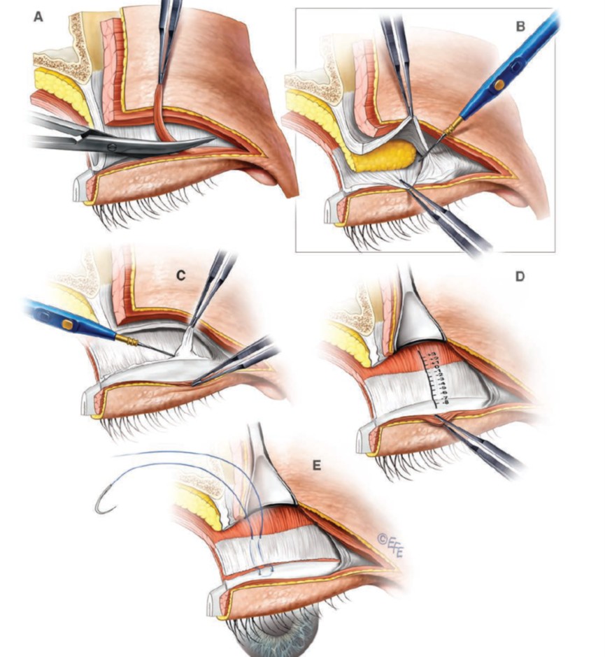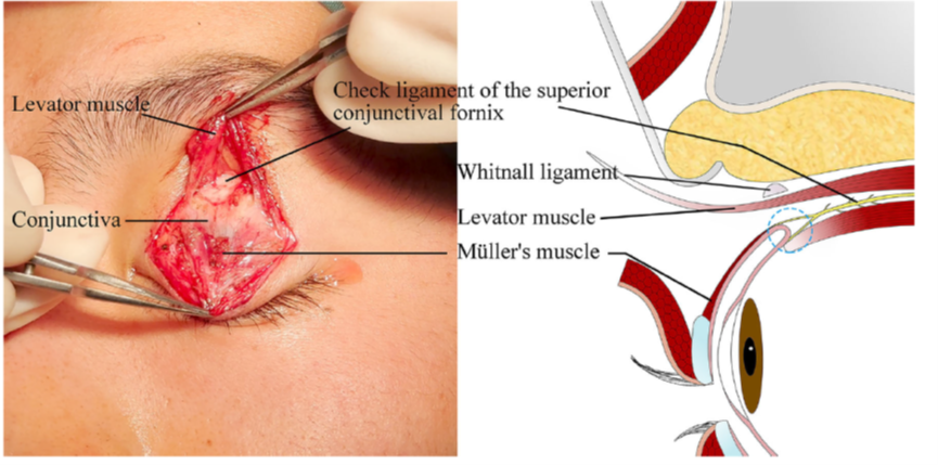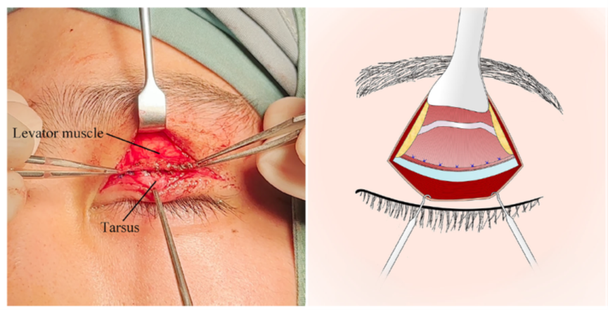 過去傳統都是割雙眼皮手術之下,從開放性的傷口直接去調整提眼瞼肌,可能是縫合縫緊(讓肌肉縮短),讓睜開眼睛這個動作變得輕鬆一點。